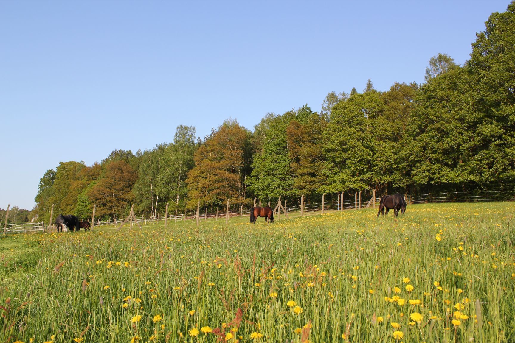 Die Pferde kommen tagsüber auf einen Paddock oder auf die Weide und nachts in ihre Box.
